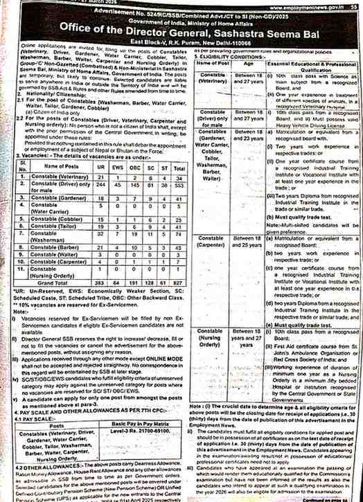 এখানে মোট ৮২৭ টি শূন্য পদ এবং ১১ টি ট্রেডে কনস্টেবল নিয়োগ করা হবে।